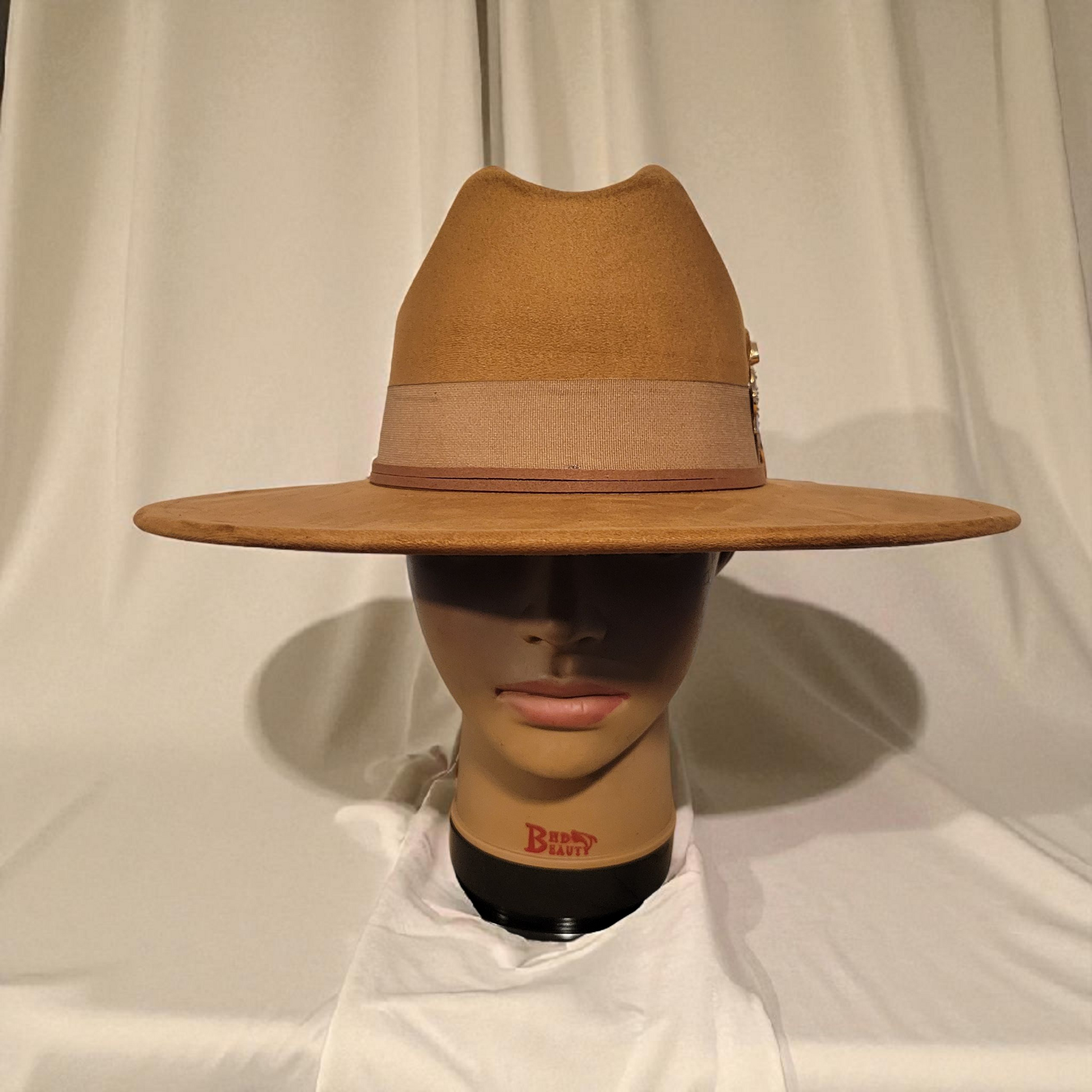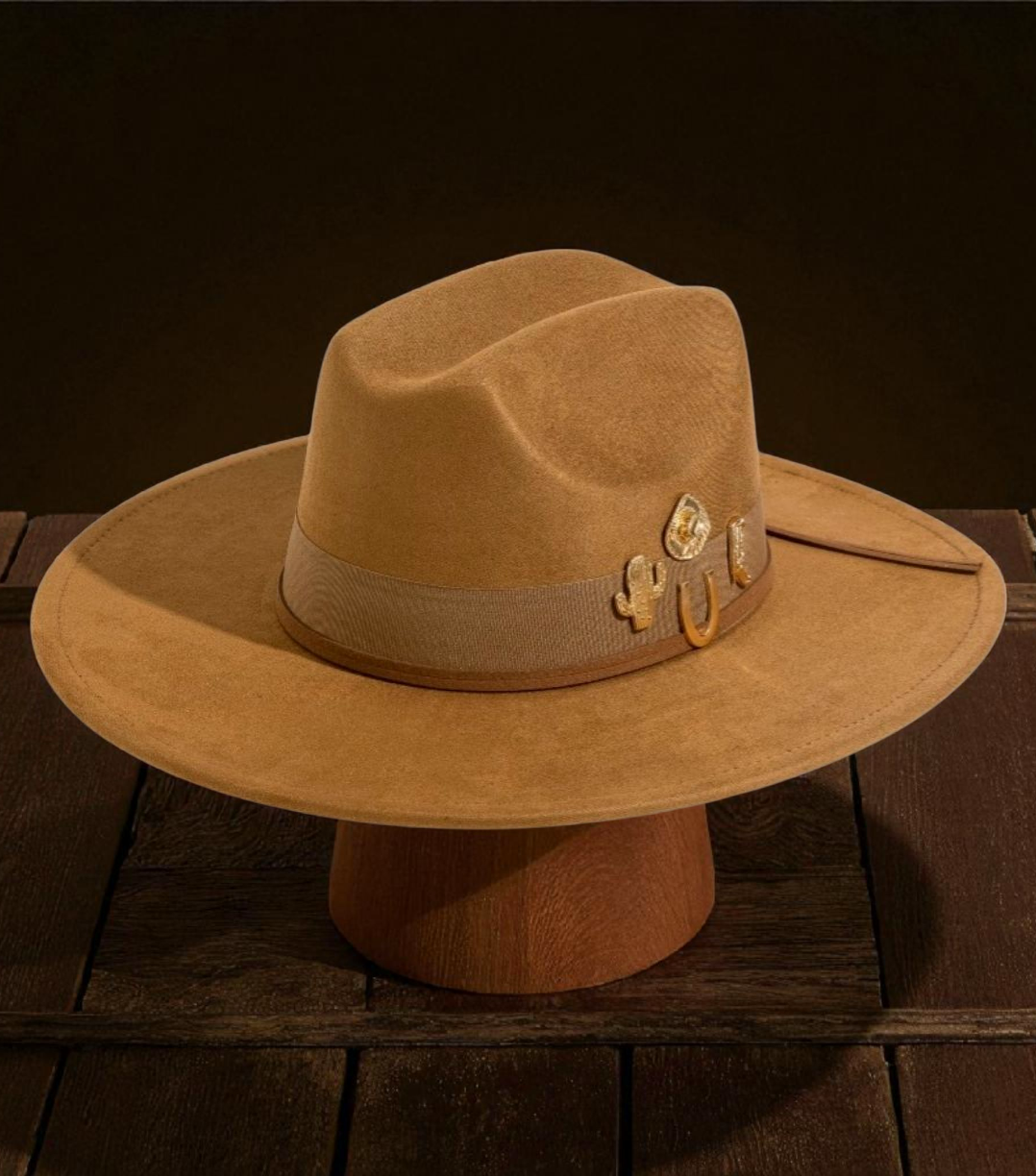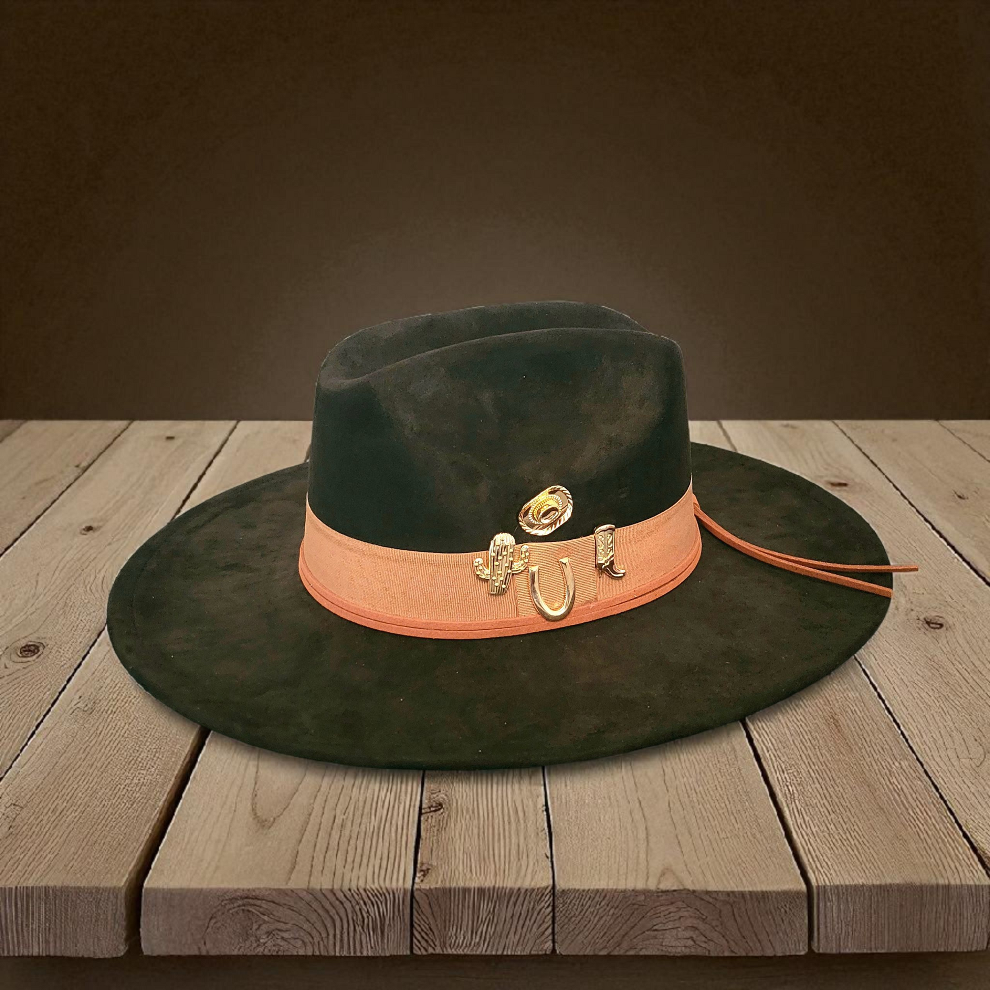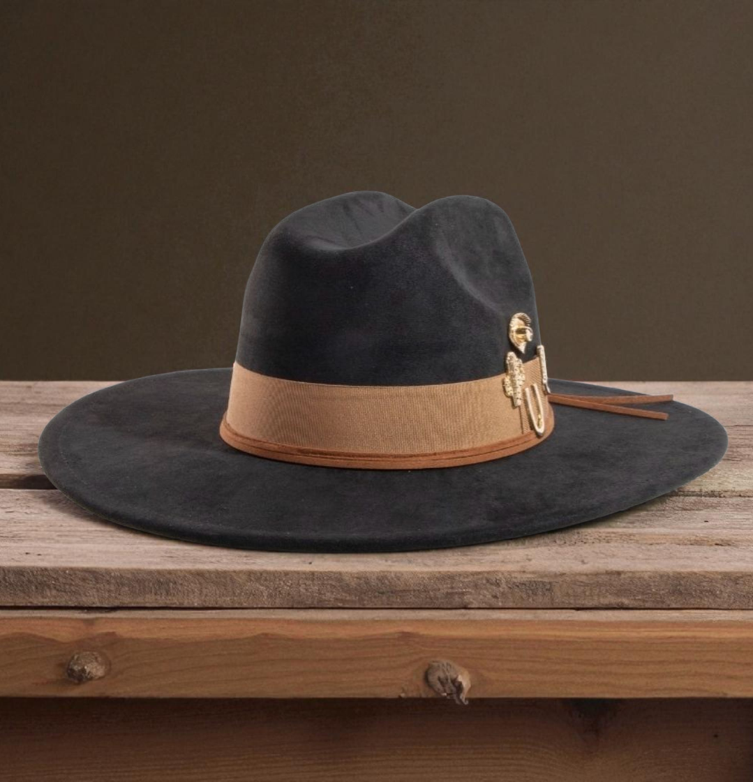 Sleek Wide brim fedora with western charms accent on a sleek grosgrain band