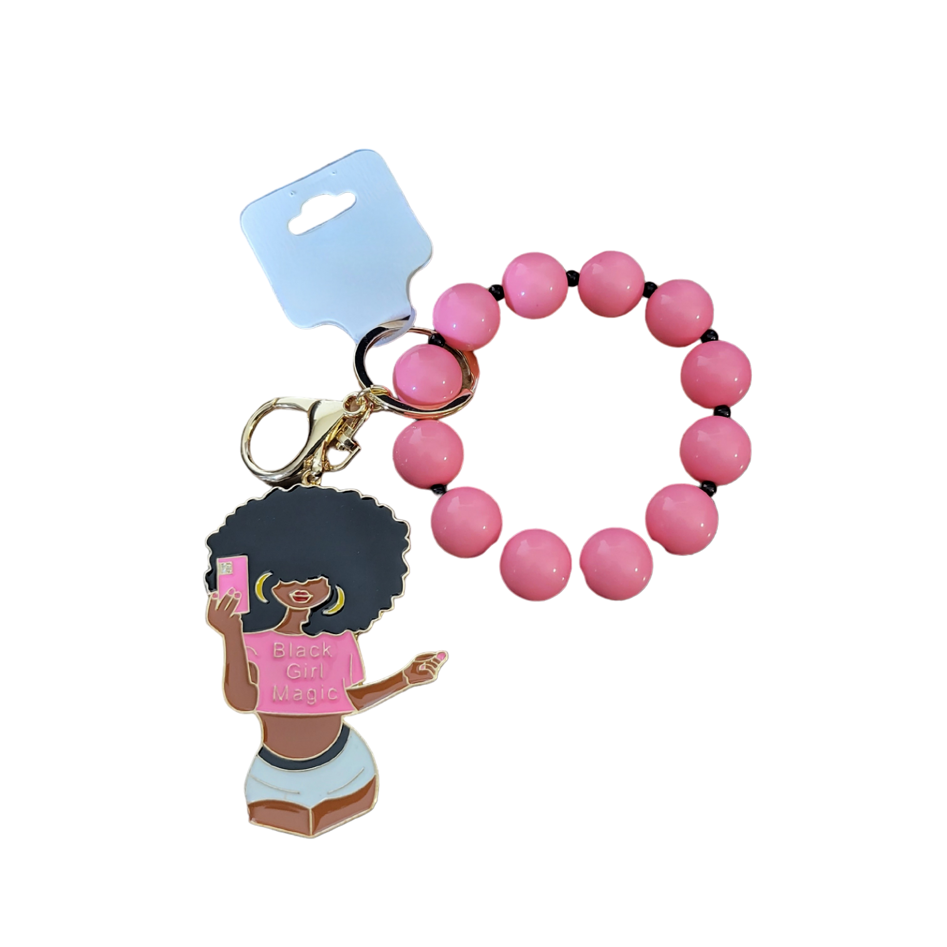 Fly girl Black Girl Magic keychain with lanyard and ball wristlet
