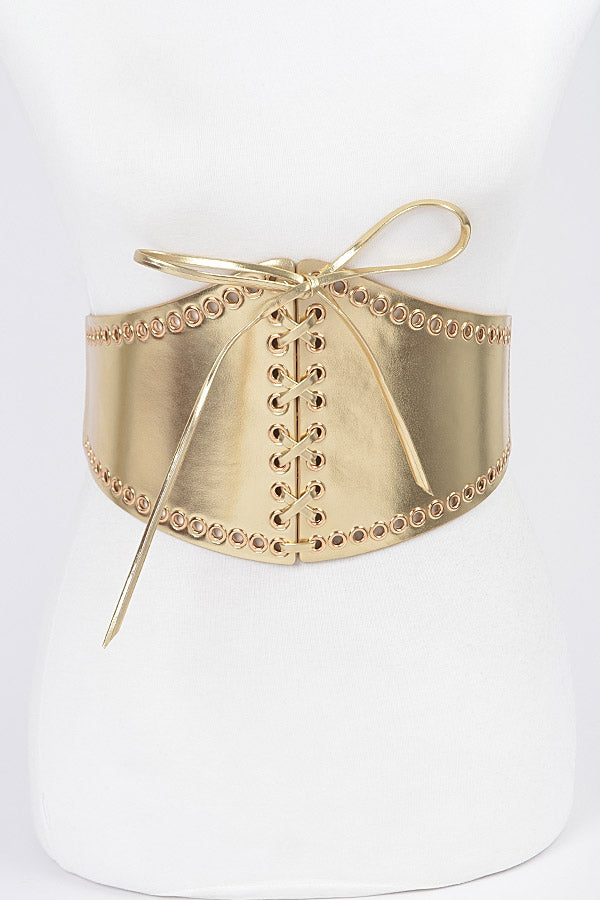Plus Size corsette stretch belt with grommet design. Snap closure in the back