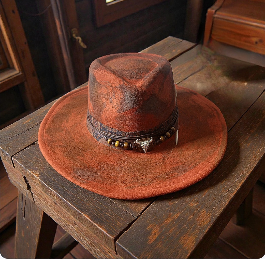 Versatile distressed fedora. Wear it any way you like!