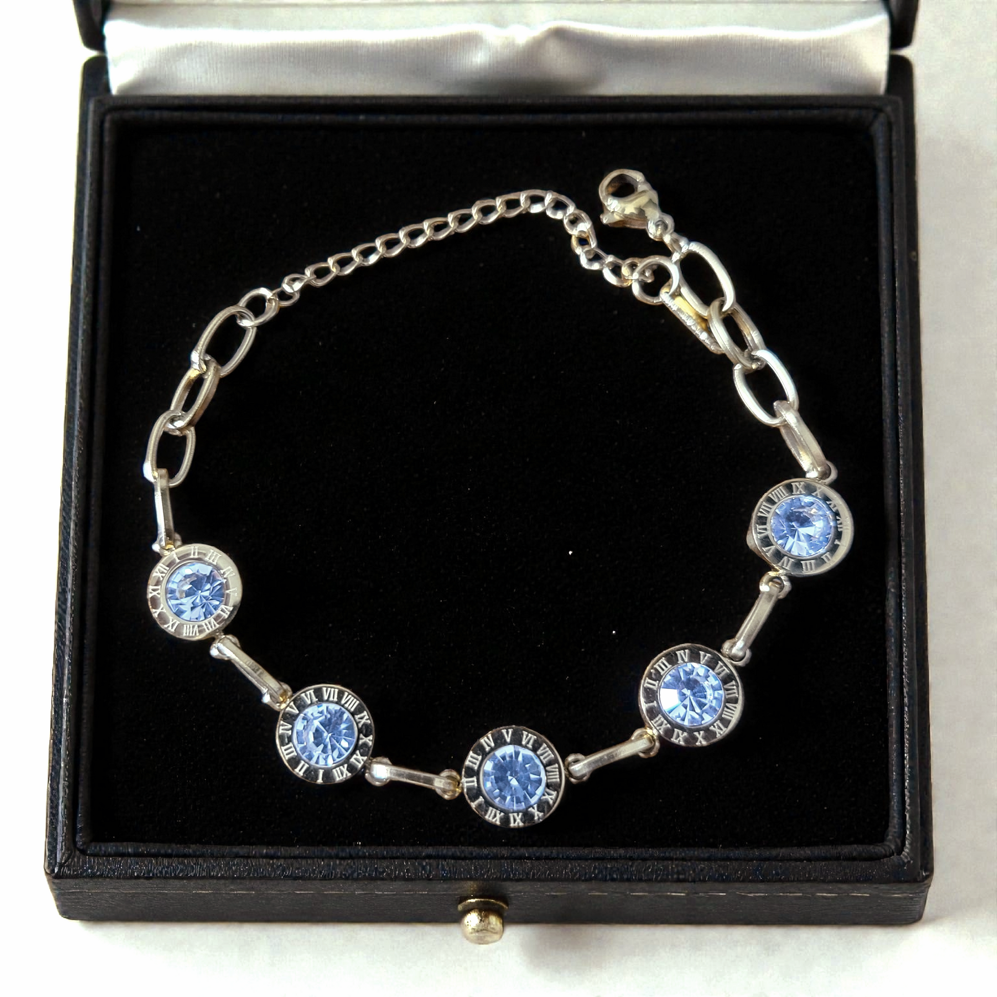 Roman numeral outlined clear rhinestone link bracelet