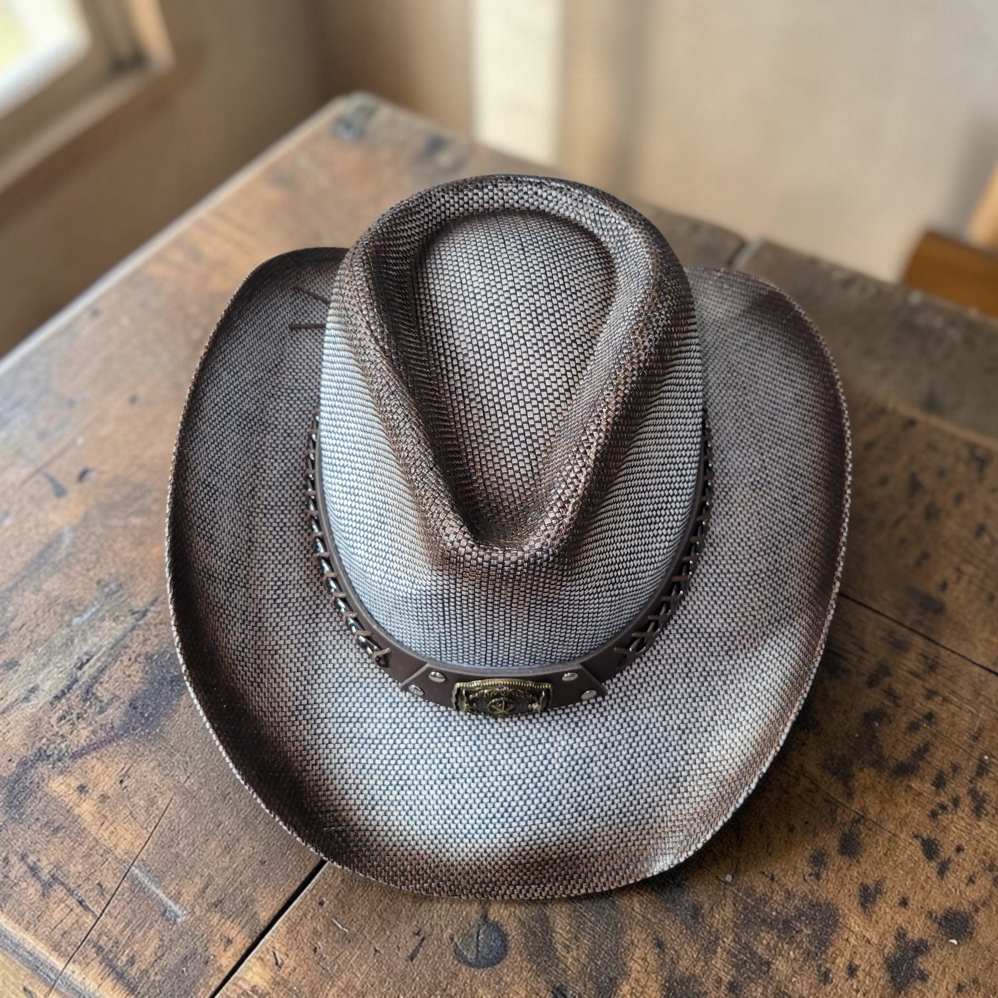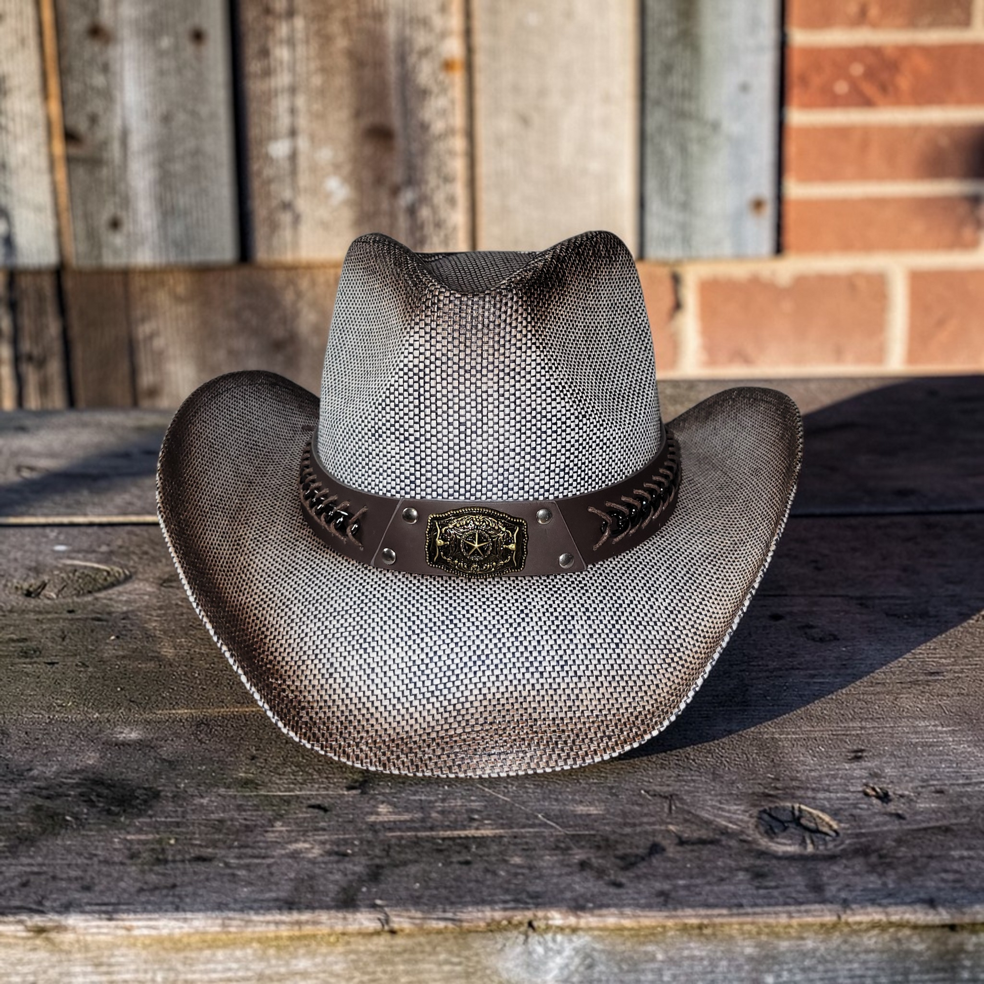 Concho Belt Accent Faux Leather Band Rustic Western Straw Cowboy Hat